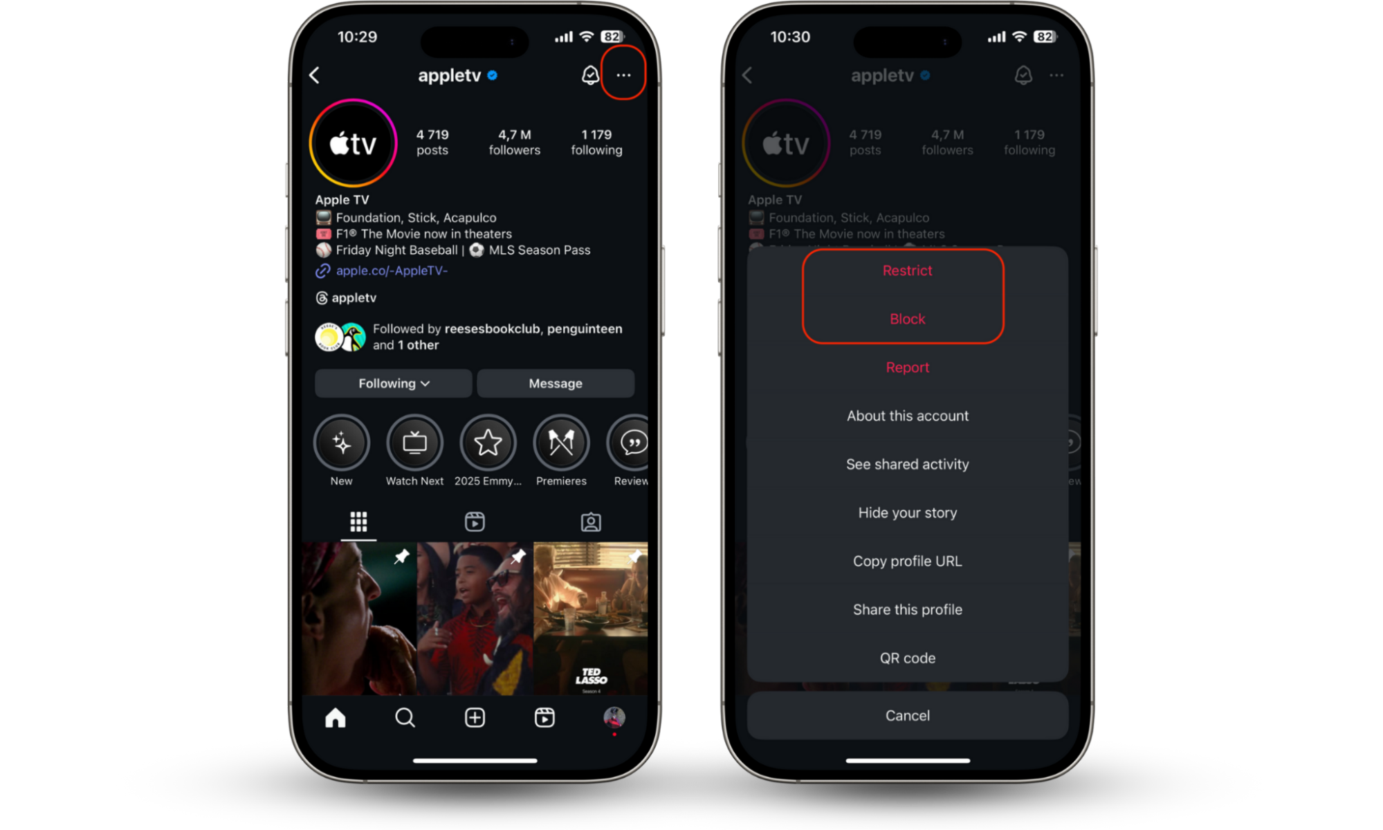 保护自己的一种直接方法是阻止或限制帐户。如果您认为有人可能在跟踪您,阻止他们将阻止他们看到您的帖子和故事。如果您正在寻找不太永久的选择,您可以限制他们的帐户,这会限制他们发表评论或向您发送直接消息而不提醒他们的能力: