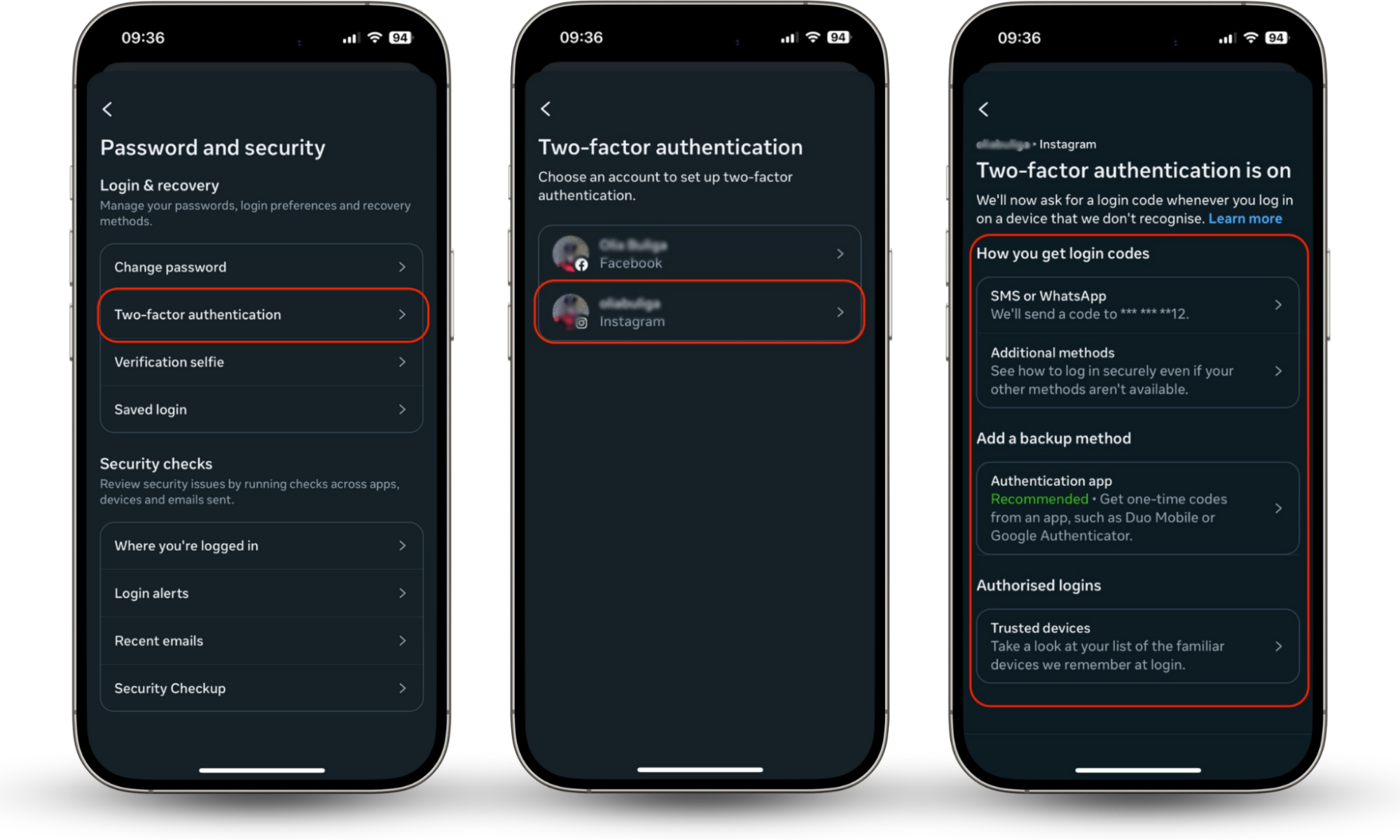 步骤 3-4。选择双因素身份验证选项 > 选择 Instagram 帐户 > 使用最适合您的安全方法