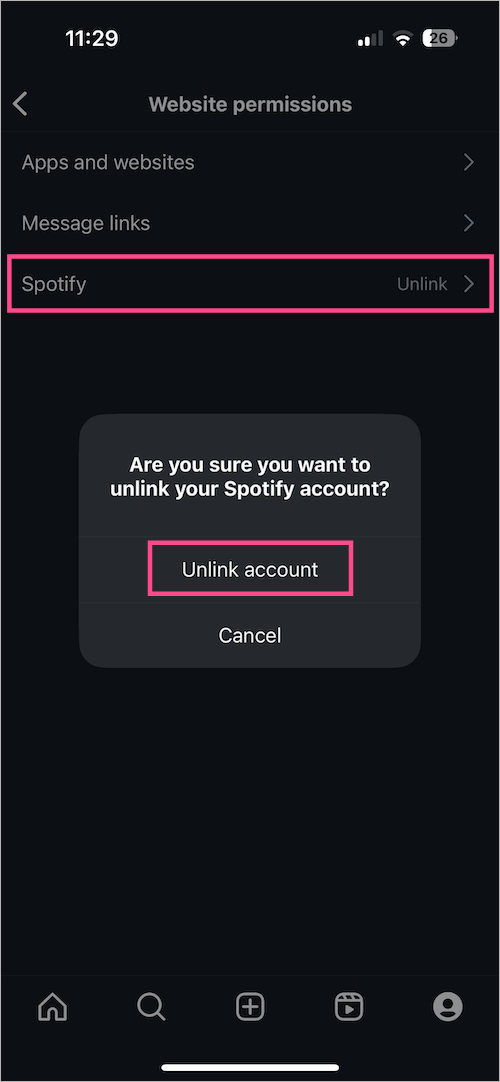 如果您决定停止从 Spotify 共享音乐,您可以随时取消 Spotify 帐户与 Instagram 的链接。
