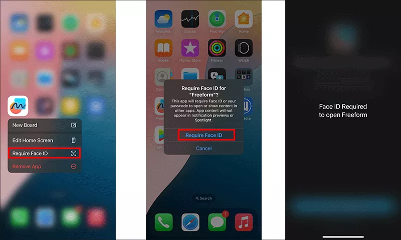 步骤3:轻敲需要面容 ID并确认。几秒钟之内,您的应用程序就会被 Face ID 锁定。
