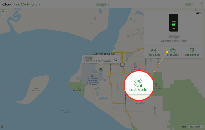 如果您在计算机上使用网络浏览器,请单击框中的“丢失模式”以锁定此 iPhone。