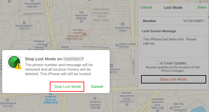 如果您在 iClould.com 网页中,请单击“丢失模式”并点击“确认止损模式”又说了好几遍。