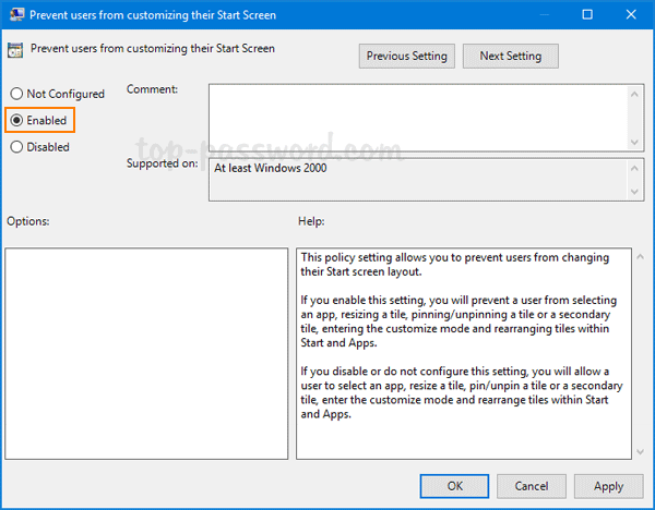 - 就是这样。您需要重新启动系统才能使更改生效。您当前的用户应该无法重新排列“开始”菜单布局、将项目固定到“开始”菜单或从“开始”菜单取消固定。此技巧也适用于 Windows 8.1 和 Windows 8。