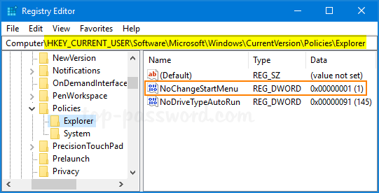此方法将仅为当前用户锁定“开始”菜单布局。如果您想锁定所有用户的布局,只需导航到注册表位置:HKEY_LOCAL_MACHINE\Software\Microsoft\Windows\CurrentVersion\Policies,然后重复上面相同的步骤来创建NoChangeStartMenu输入它就会起作用。