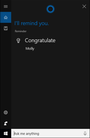 第 2 步:然后输入或说:“提醒我在莫莉下次打电话时向她表示祝贺。”