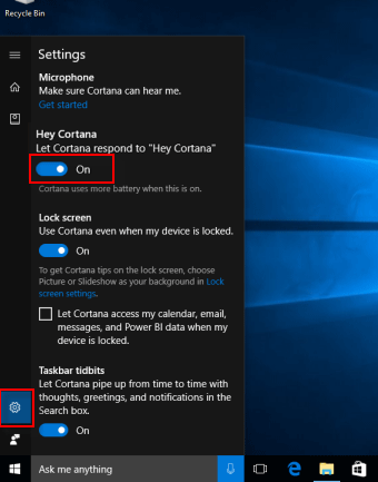 您需要启用一个开关才能引起 Cortana 的注意。使用以下步骤可以免提使用说“嘿小娜,”并且您无需单击麦克风图标。