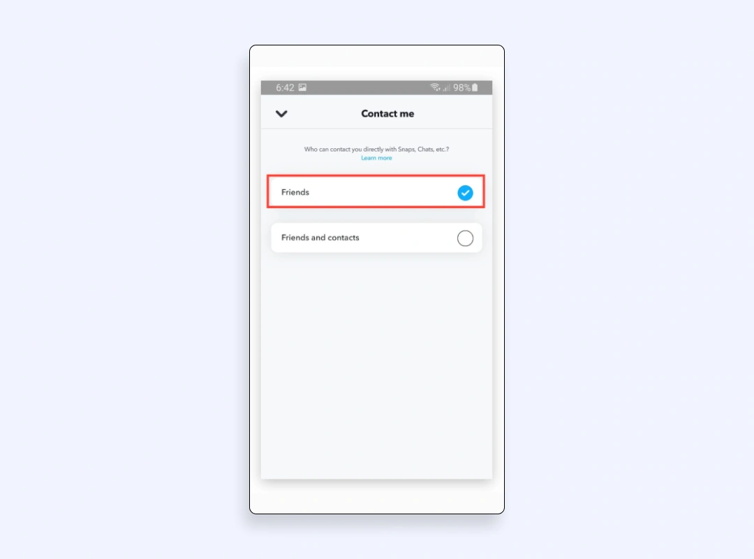 它脱离了 Snapchat 的“你可能认识的人”雷达。这减少了陌生人刮擦相互联系带来的冷漠。