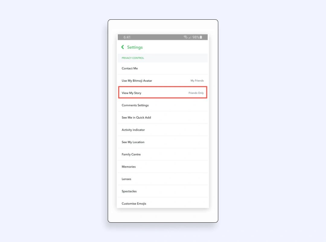 常规故事遵循上述全局设置,但私人 Snapchat 故事提供每个帖子的隐秘性: