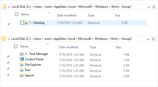 您可以找到与Winx快速链接菜单相关的快捷方式C:用户使用Nameappdatalocalmicrosoftwindowswinx,确保您可以在Windows Explorer中查看隐藏的文件。只需复制并粘贴以下档案浏览器地址栏,点击进入直接转到Winx文件夹。
