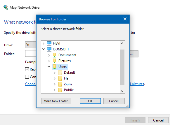 步骤4:您要查找的网络文件夹名称将立即列出,然后单击结束按钮。 ((\ Isumsoft \用户)