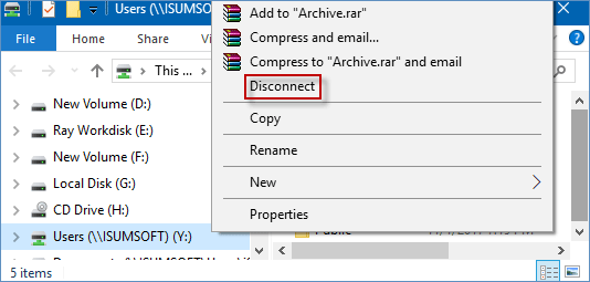 注意:(或者您可以右键单击此PC下的新驱动器字母,然后选择断开选项。 )