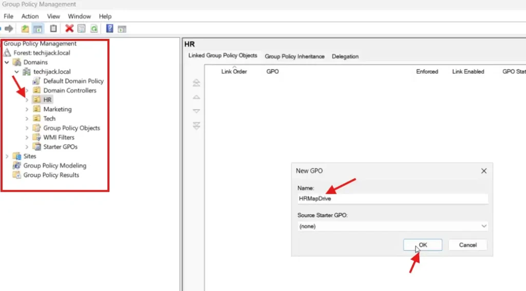 我们有一个名为 HR 的组织单位,并且我们计划向 HR OU 内的用户提供 MapDrive 访问权限。