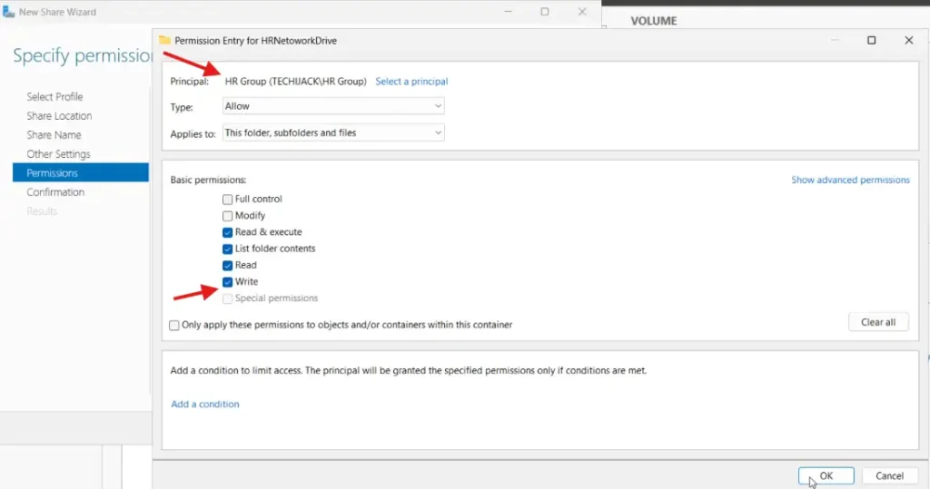 这里选择HR组,表示只有HR组用户才能访问该共享;其他用户将被自动限制。