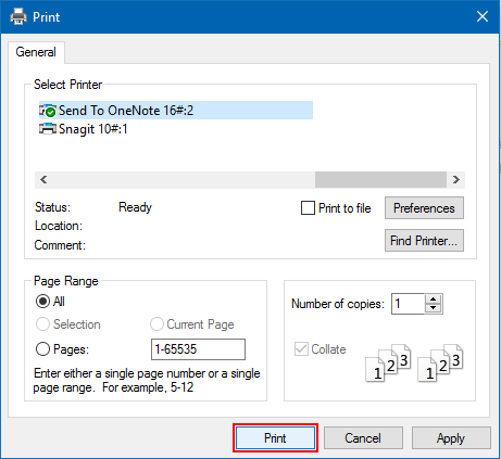 步骤3:选择您想要的打印机和首选项,然后单击打印。