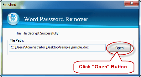 步骤 3:Word Password Remover 成功删除文档的保护后,您可以单击打开按钮直接访问此文档,无需询问密码。