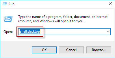 打开运行对话框,然后输入外壳:桌面然后单击好的。