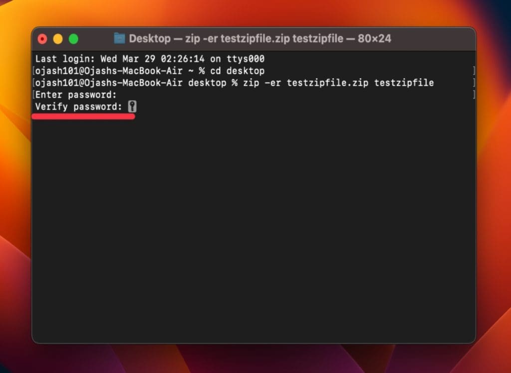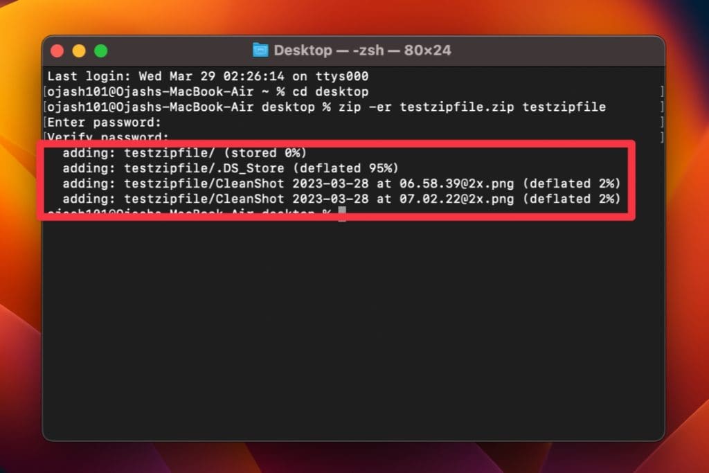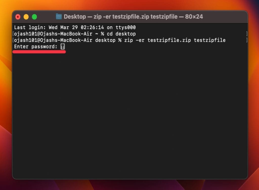 以下是如何在 Mac 上使用密码保护 zip 文件使用终端: