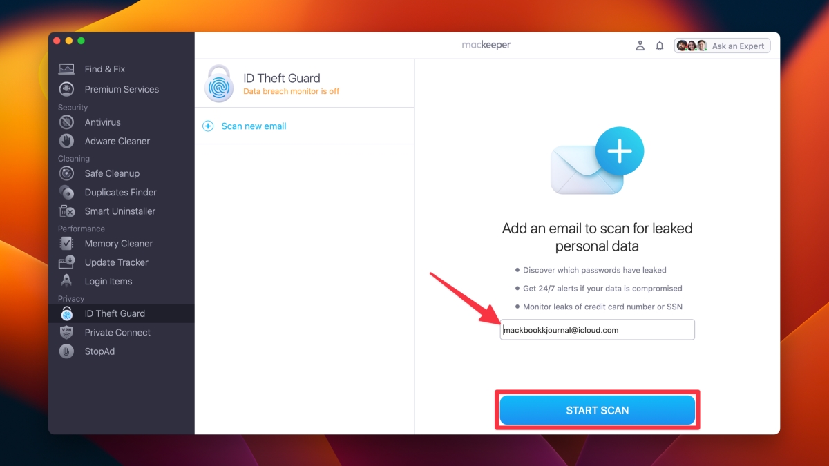 - 前往身份防盗卫士MacKeeper 中的部分。
