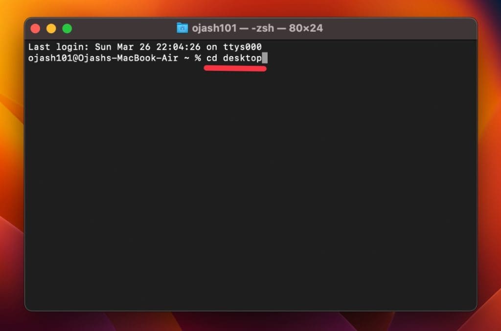 - 点击打开 Mac 上的终端应用程序命令 ⌘+空格键并打字终端在聚光灯搜索栏。