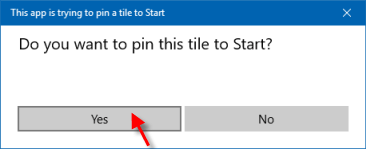 第 3 步:点击是的将此图块固定到“开始”。