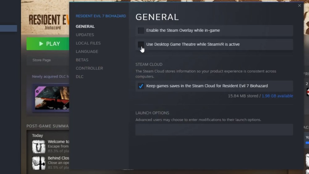 2. 打开 Steam 库并右键单击 Resident Evil 7 Biohazard。
