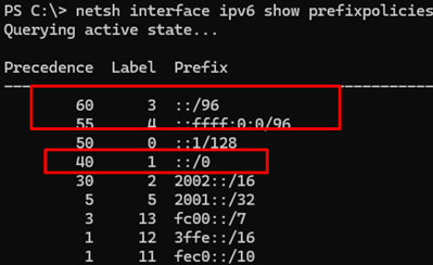 netsh interface ipv6 set prefix ::ffff:0:0/96 55 4