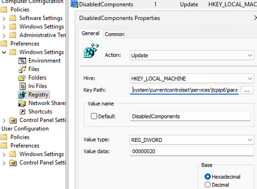 如果您希望域中的所有计算机优先考虑 IPv4 而不是 IPv6,则可以使用组策略首选项部署此注册表设置。