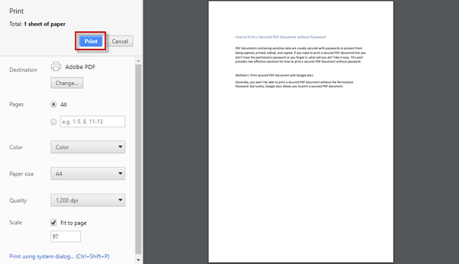 步骤3:现在打印保护已取消,您可以不受任何限制地打印PDF文档。