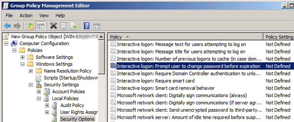 接下来,双击“交互式登录:提示用户在密码过期前更改密码” 右侧窗格中的策略。