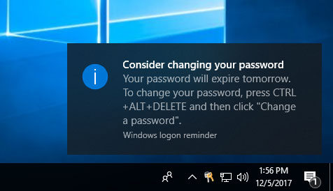 在您的 Windows 密码过期之前,您每次登录本地帐户或域用户时都可能会收到密码过期通知。