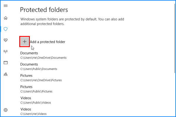 步骤4:单击+按钮,然后导航以选择要保护的文件夹。在这里,您还可以选择网络共享和映射驱动器。