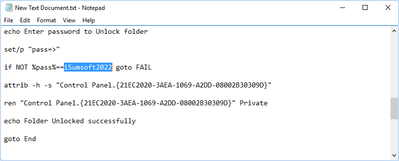 步骤7:如果您想访问受密码保护的文件夹,双击private.bat 并输入正确的密码即可解锁。