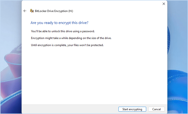 第四步:一切准备就绪后,单击开始加密按钮以使用 BitLocker 保护驱动器中的文件夹。