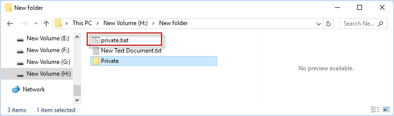 步骤 4:双击 private.bat,将在您的驱动器上创建一个 Private 文件夹。