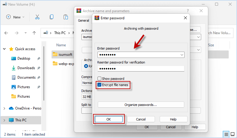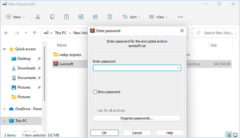 方式 2:使用 WinRAR 密码保护外部硬盘/USB 中的文件夹