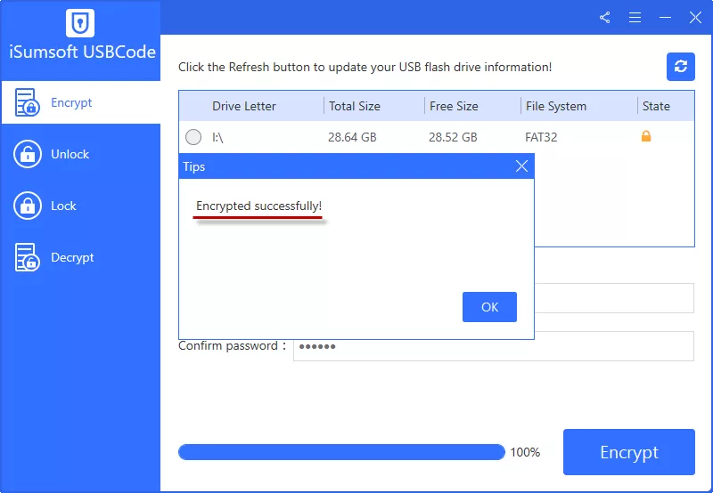 步骤 5:等待完成,您的驱动器只能使用密码访问。