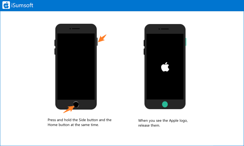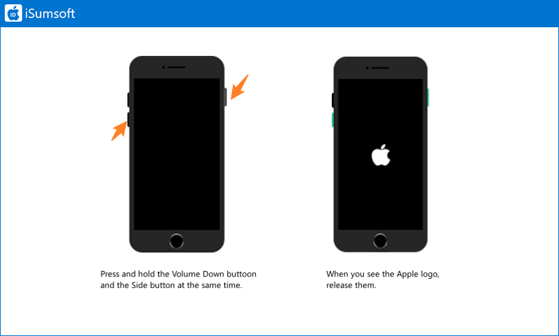 向下同时按下按钮。当 Apple 徽标出现时,松开两个按钮。