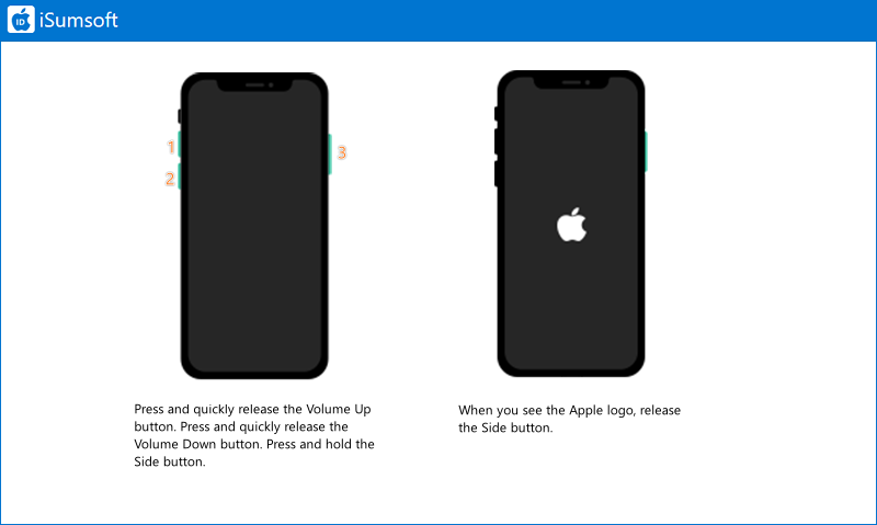 1:将iPhone连接到PC后,按住调低音量和