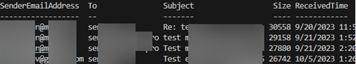 $inbox.Items | ft SenderEmailAddress, To, Subject, Size, ReceivedTime
