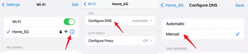 步骤 4:点击 DNS 服务器下方的添加服务器,并根据您所在的地区使用以下 DNS 值之一,然后您可以绕过激活锁并解锁您的 iPhone。