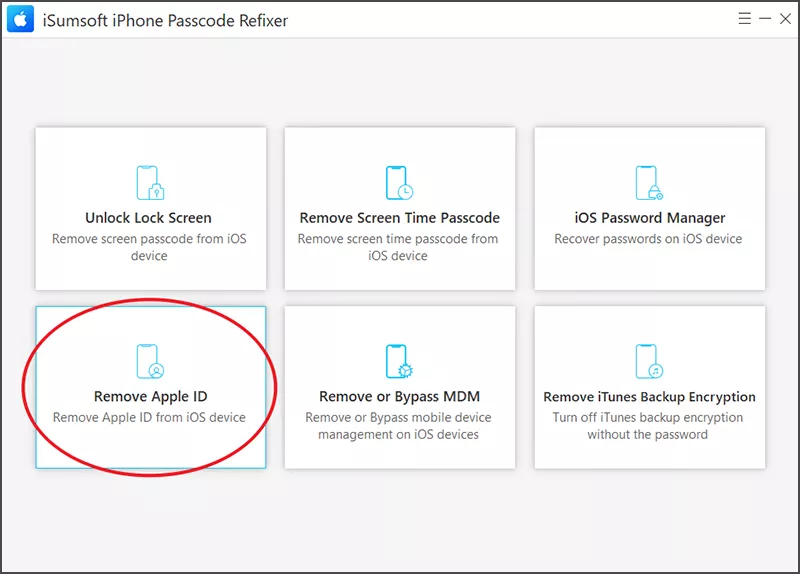 步骤 2:在计算机上打开 iSoft iPhone Passcode Refixer,然后选择“删除 Apple ID”选项。