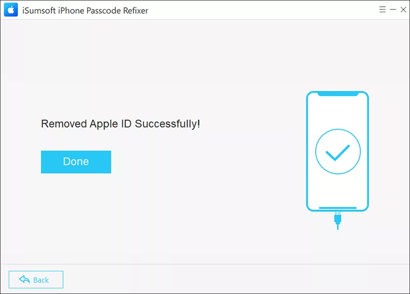 步骤 9:几分钟后,当软件屏幕显示成功消息时,Apple ID 已从您的 iPhone 中删除。然后,您可以访问您的 iPhone 并登录新的 Apple ID。
