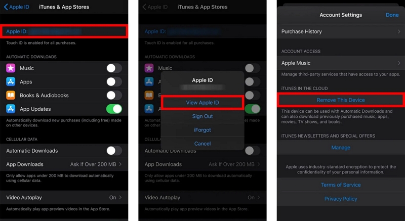 步骤2:点击“Apple ID”>“查看 Apple ID”。然后,选择“从该设备中删除”。