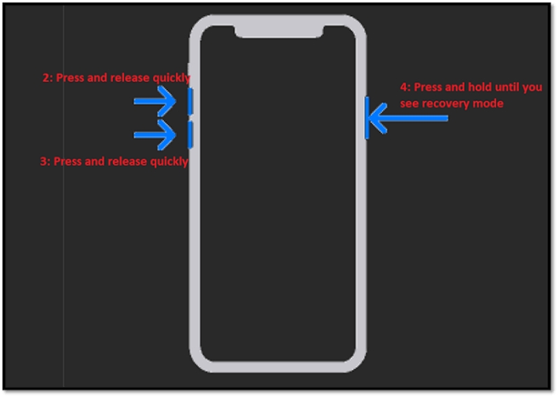 使用恢复模式从 iPhone 中删除前主人的 Apple ID(无需密码)的步骤如下: