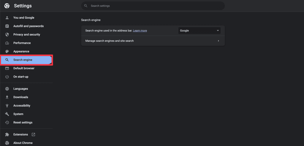 - 将您首选的搜索引擎设置为默认搜索引擎并删除任何不需要的搜索引擎。