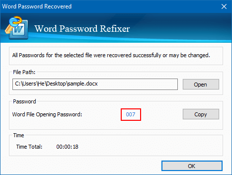 第 3 步:当它提示您“文件解密成功“,您可以按打开按钮打开目标 Word 文档,无需输入密码。
