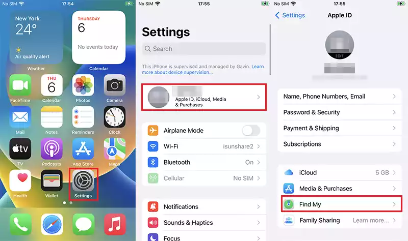 设置»苹果ID»查找我的。