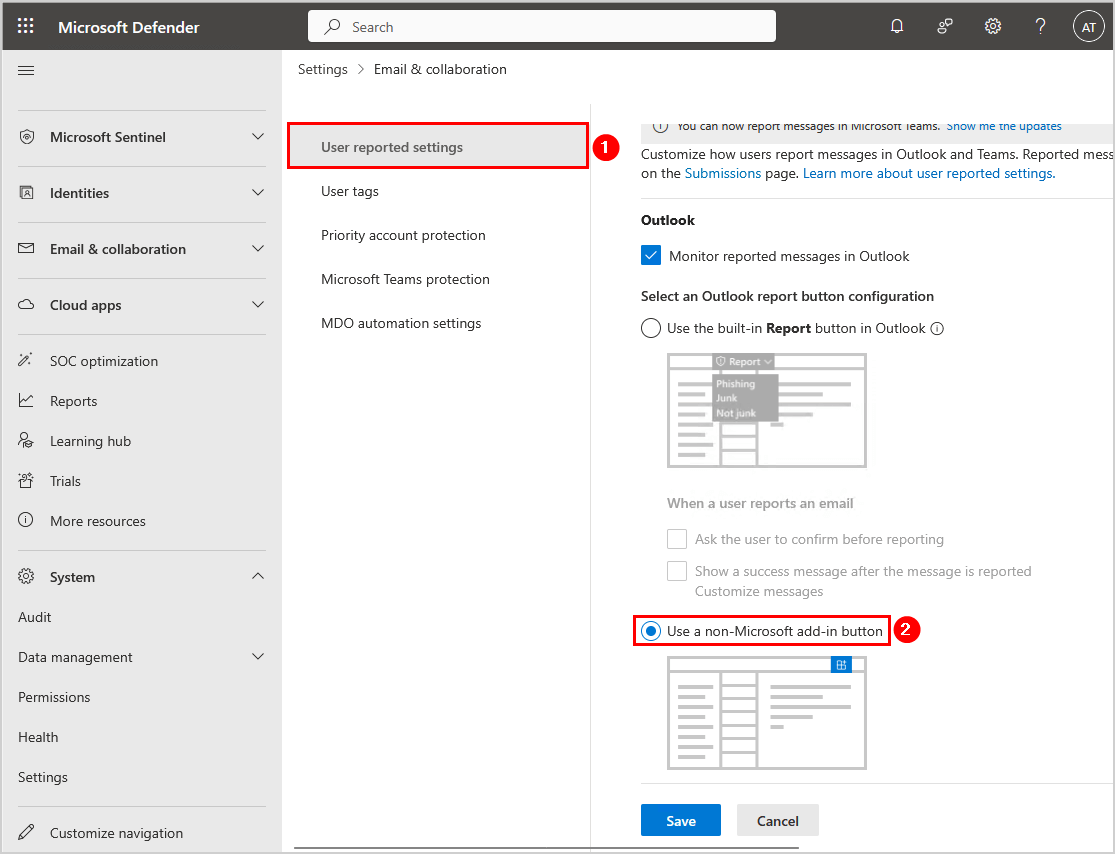 您了解了如何从 Outlook 和 Outlook 网页版中删除 Microsoft 报告按钮。转到 Microsoft Defender 中的用户报告设置,然后选择使用 Outlook 的非 Microsoft 加载项的选项。等待 15 分钟以使更改生效。