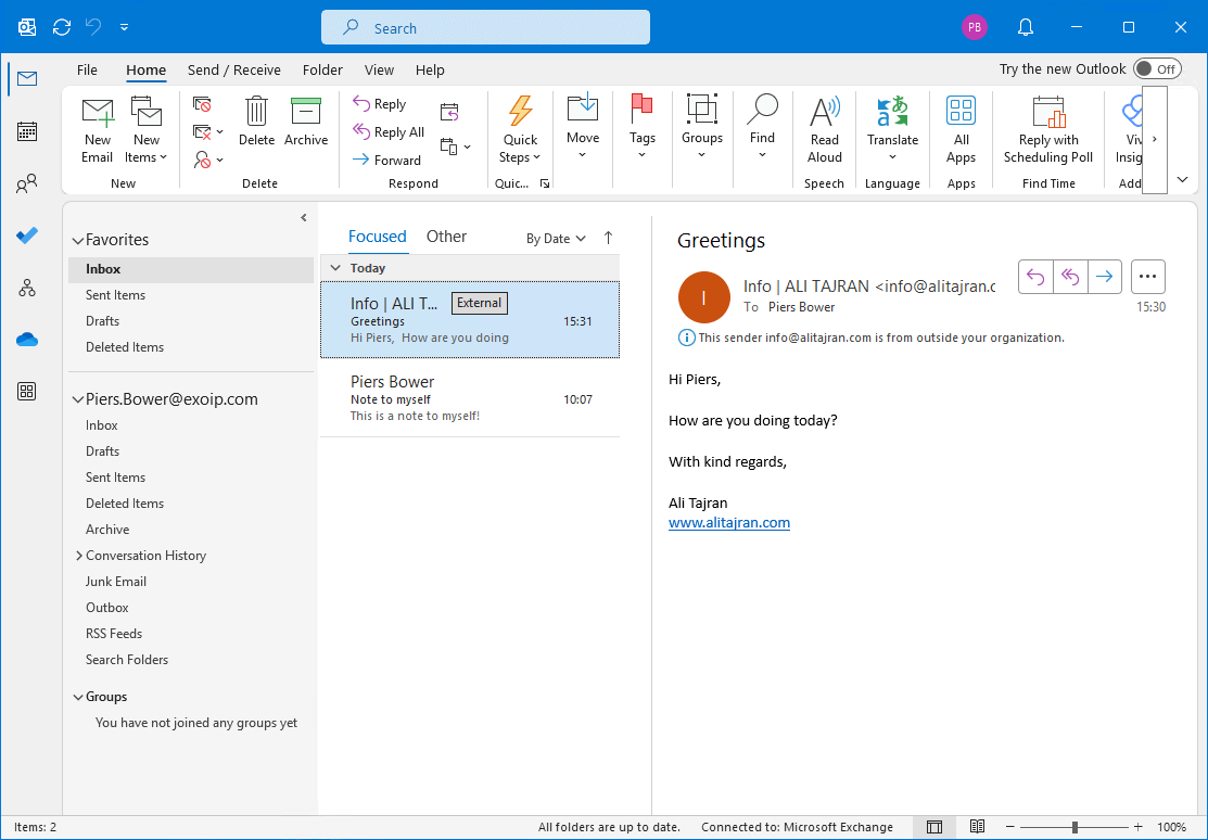 这是删除 Microsoft 报告按钮后 Outlook 中的外观。