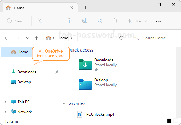 - 如果您重新启动文件资源管理器,您会发现“OneDrive – 个人”条目将不再显示在左侧导航窗格中。